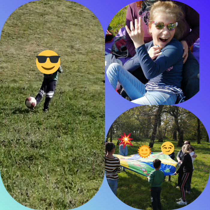 Alle Klassen waren eingeladen sich auf ein Picknick, mit jeder Menge Spiel und Spaß vorzubereiten. Am Gelände angekommen verteilten sich die einzelnen Klassen, um ihre Decken, Tücher und Unterlagen auszubreiten. Die Berufsschulstufe sorgte mit einer mobilen Musikbox für musikalische Unterhaltung. Sportlich bewegen war möglich, so dass Fußbälle, Schwungtücher, Frisbeescheiben, Tauseile und andere Sportgeräte zum Einsatz kamen. Zum gemeinsamen Mittagessen gab es Lunchpakete vom Versorgungspartner „Menue-Express“ und gestärkt ging es zurück in die Schule.
